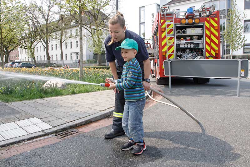 Ein besonderer Hingucker auf dem Klinikvorplatz war der begehbare Feuerwehrwagen der Freiwilligen Feuerwehr Huckelriede/Neustadt.